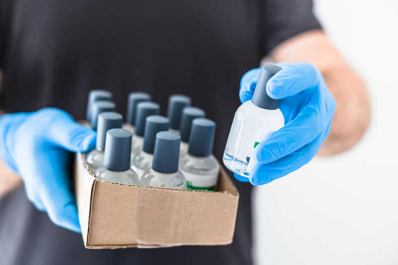 Hand sanitizer contains agents to kill bacteria and germs that may cause illness. It can be rubbed onto hands when access to soap and water is not available.